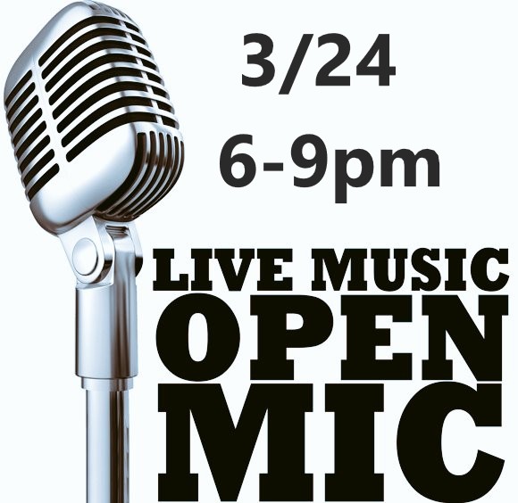 Open Mic Night 3/24 March 24, 2026 06:00 PM until March 24, 2026 09:00 PM 2nd & 4th Tuesday of the Month 6:00 PM - 9:00 PM